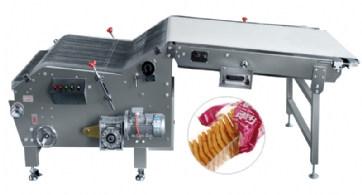 該機(jī)是將冷卻后的餅干,通過(guò)星輪或速差裝置把餅干自動(dòng)堆成側(cè)立狀,再送至檢餅臺(tái)進(jìn)行包裝。能有效提高餅干包裝的工作效率。根據(jù)餅干的不同規(guī)格及特征,可星輪式整理或速差式整理互換。