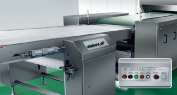 本機(jī)是我公司在國(guó)外產(chǎn)品的技術(shù)基礎(chǔ)上進(jìn)行優(yōu)化、創(chuàng)新的新一代產(chǎn)品。當(dāng)餅干烘烤成品以后,在餅干表面均勻噴灑上各種食用油,增加表面光亮,提高美觀程度,改進(jìn)餅干口味,增加花色品種,提高餅干檔次。